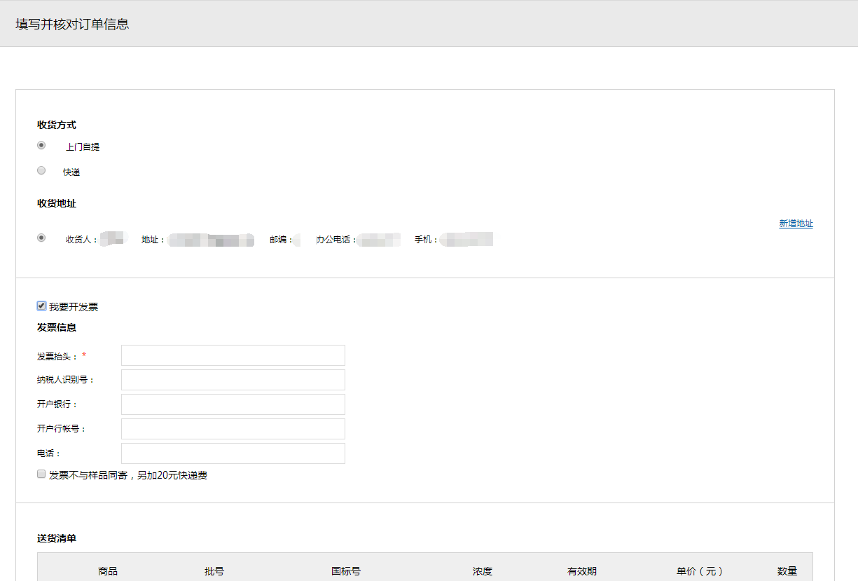 第四步、提交訂單。選擇配送方式和支付方式后提交訂單。